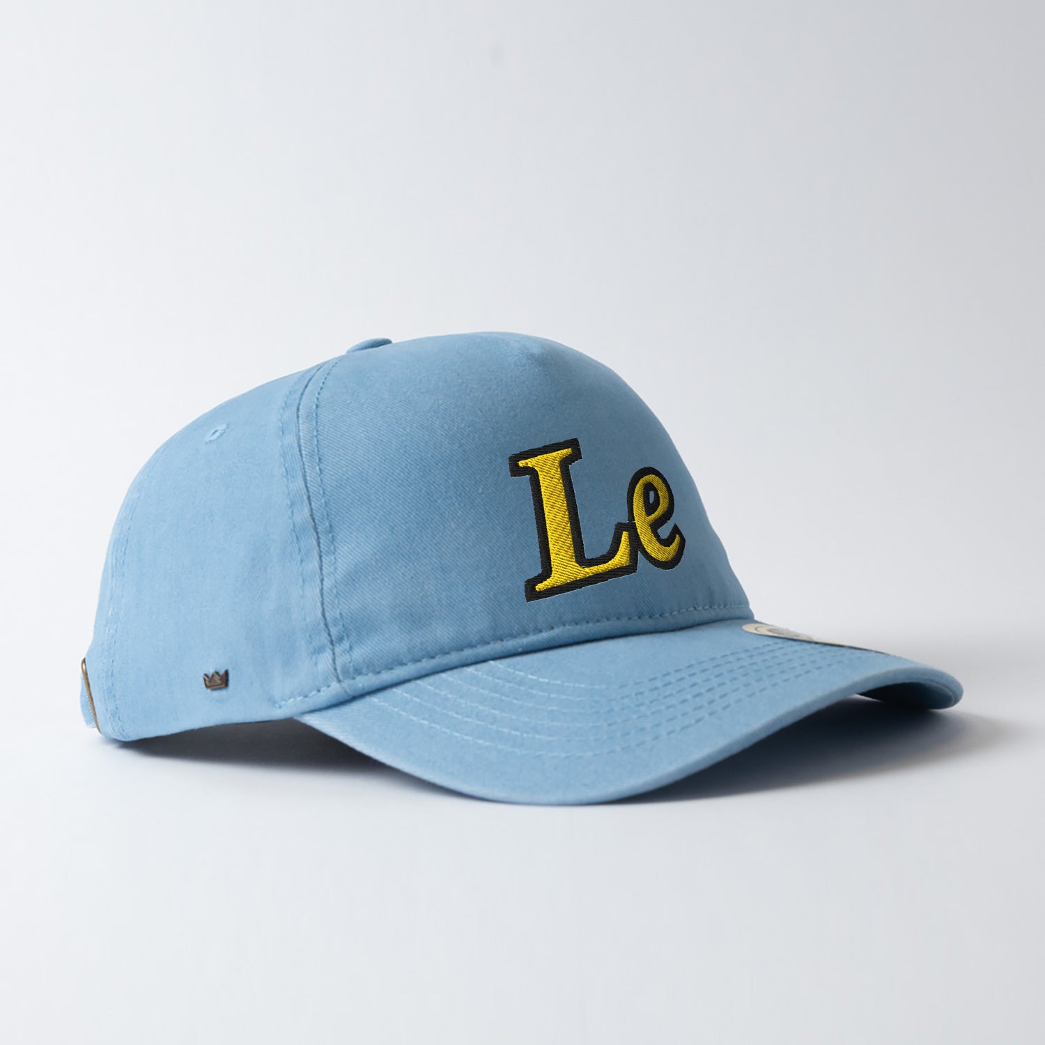 Sky blue, soft to the touch, lightweight and emblazoned with a black and yellow "Le".